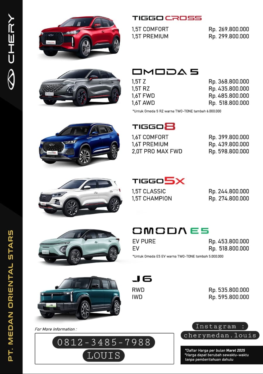 "... Dapatkan pelayanan profesional, mudah dan cepat serta deal terbaik bersama kami untuk urusan mobil Chery pilihan Anda."